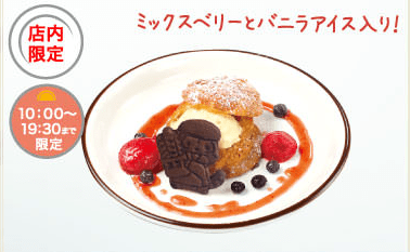 ชูครีมใส่ไอศครีมวนิลา กับเบอร์รี่ชนิดต่างๆ เมนูสำหรับรับประทานในร้านเท่านั้น (เฉพาะช่วงเวลา 10:00 ~19:30)
