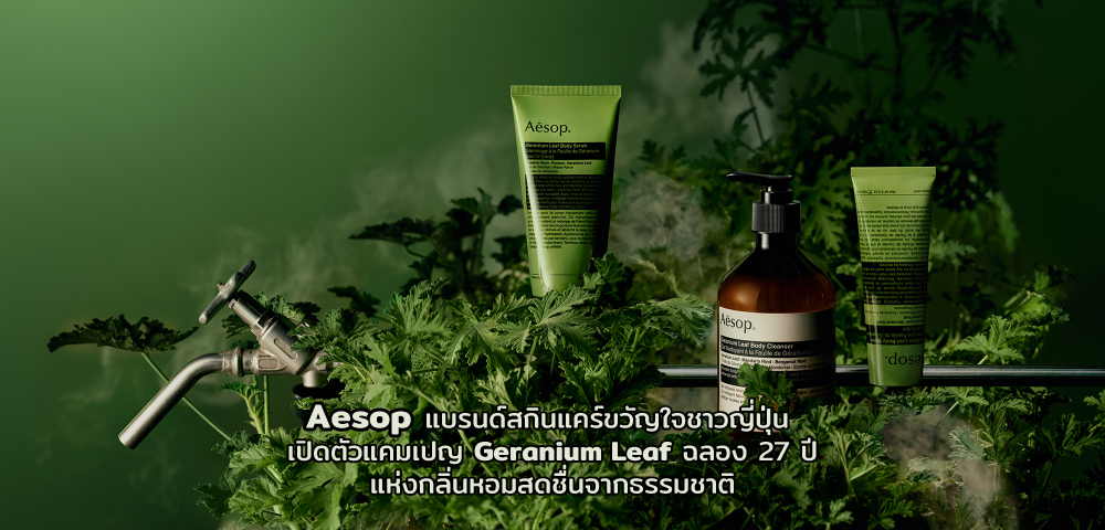 Aesop แบรนด์สกินแคร์ขวัญใจชาวญี่ปุ่น เปิดตัวแคมเปญ Geranium Leaf ฉลอง 27 ปีแห่งกลิ่นหอมสดชื่นจากธรรมชาติ
