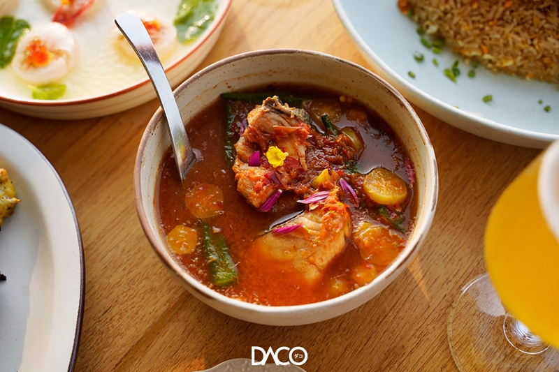 เมนูที่อยากให้ลอง แบบแนะนำว่าต้องลองให้ได้เลย คือ ‘แกงตูมี้’ (ราคา 299 บาท) แกงลูกผสมระหว่างแกงส้มกับแกงเผ็ด แต่ทำให้รสนุ่มและเบากว่า เปรี้ยว หวาน เค็ม สดชื่น ใช้ปลาอินทรีย์ กระเจี๊ยบ และตะลิงปลิงดอง เป็นจานที่กินแล้วรู้สึกแปลกใหม่ แต่ก็ยังคุ้นเคย อร่อยจนอยากจะกินให้เรียบเองทั้งหมด
