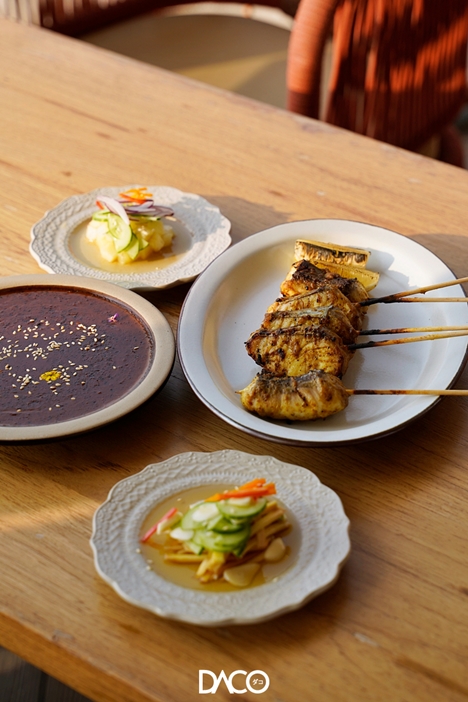นอกจากนี้ ยังมีเมนูน่าสนใจอื่น ๆ อีก เช่น สแกลลอปคาร์ปาชิโอ (ราคา 690 บาท) เมนูเบา ๆ ที่เหมาะกับการเรียกน้ำย่อย สะเต๊ะปลาอินทรีย์ (ราคา 299 บาท) ปลาอินทรีย์เนื้อแน่น กลิ่นหอม ที่เสิร์ฟพร้อมอาจาด 2 แบบให้เลือกจิ้มกินเพลิน ๆ ทั้งอาจาดสับปะรดที่ให้ความสดชื่น และอาจาดปีนังที่มีความนัว ความหอมหวานจากถั่ว