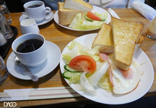 กาแฟมาเป็นกาแฟดำ พร้อมนมและน้ำเชื่อมให้เติมเองตามใจชอบ รสชาติอาหารเราค่อนข้างประทับใจมากๆ โทสต์กรอบนอกนุ่มในและหอมเนยมากกกกๆ ผักสลัดกรอบที่ราดด้วยน้ำสลัดโฮมเมดก็อร่อยไม่แพ้กัน ไข่แดงที่ทอดมาแบบพอดี และแฮมชิ้นหนา ทานพร้อมกับกาแฟอุ่นๆ เป็นสิ่งที่เกินความความหมายของเรามาก ทั้งราคา ปริมาณ รสชาติและบรรยากาศ ทั้งหมดนี้แค่ 680 เยน หรือเป็นเงินไทยอยู่ที่ประมาณ 220 กว่าบาทเท่านั้น