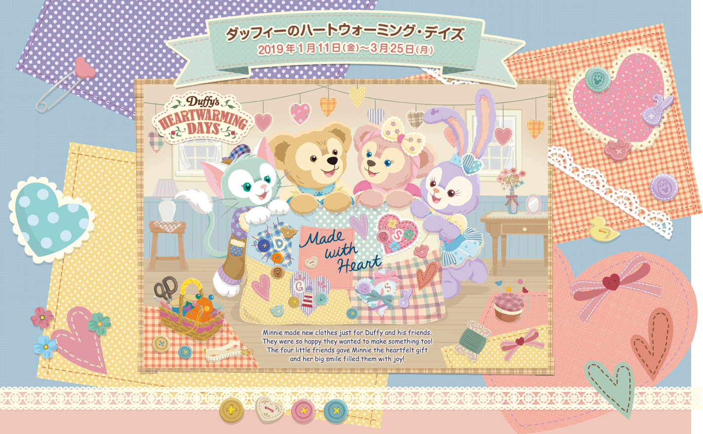 ติดตามรายละเอียดได้ที่ : http://www.tokyodisneyresort.jp/treasure/fantasy/duffy/heartwarming_days2019/