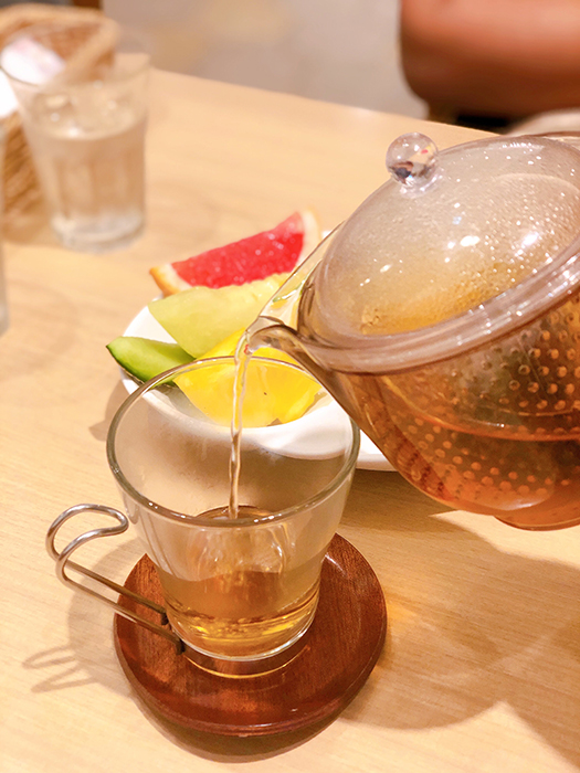 เครื่องดื่มก็มีหลากหลาย เช่น ชาผลไม้สมุนไพร แก้วในรูปนี้จะเป็น Rosehip – Hibiscus – Stevia – Liquorice ทางร้านอธิบายว่า มีวิตามิน C และมีกลิ่นอโรมาช่วยผ่อนคลายความเครียด อันนี้คือสั่งมาจิบแกล้มของหวานช่วยแก้เลี่ยนดีมาก ฟินสุด ๆ