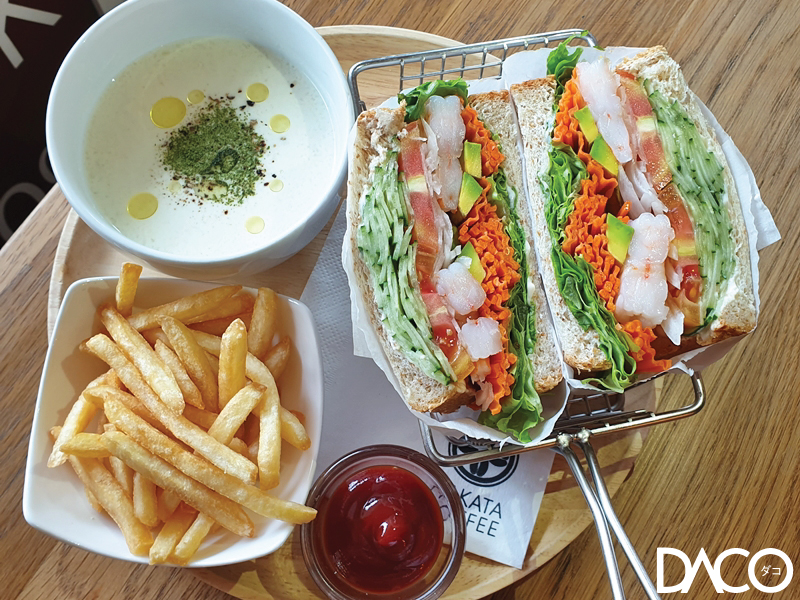 3 จุดเด่นของเมนู “ชุดแซนด์วิชกุ้งอะโวคาโด” ของร้าน Hakata Coffee
