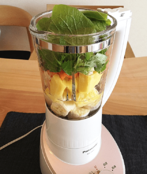 ▼ “ทุกเช้าฉันจะดื่มแค่น้ำปั่นเพื่อสุขภาพเท่านั้น ส่วนเช้านี้ฉันทำน้ำผักและผลไม้ปั่นตามส่วนผสมด้านบน