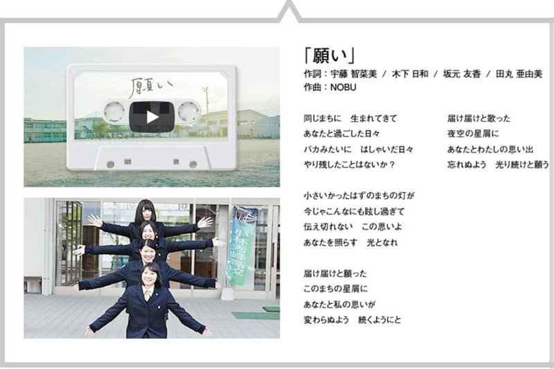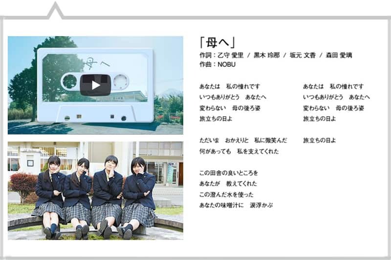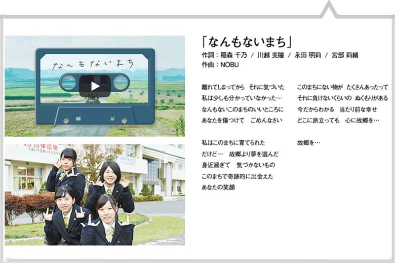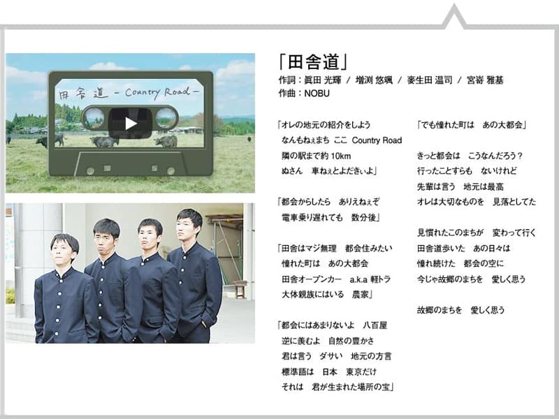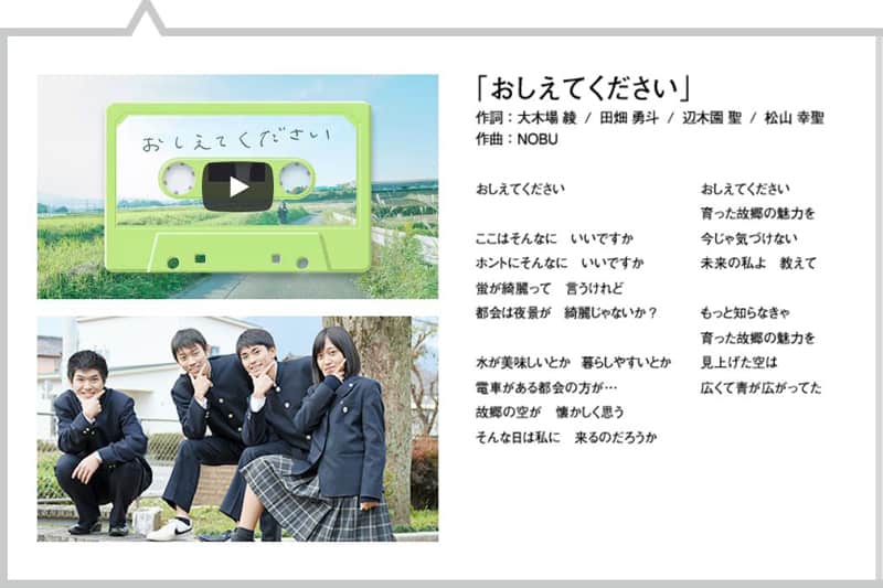 สิ่งที่คนในเมืองนี้เลือกทำในตอนนี้ก็คือ การให้นักเรียนมัธยมในเมืองโคบายาชิ ถ่ายทอดออกมาเป็นบทเพลงเกี่ยวกับเมืองของตนมา 6 เพลงด้วยกัน และเด็กๆ มีพี่เลี้ยงเป็นโนบุ นักร้อง-นักแต่งเพลงที่เกิดและเติบโตในเมืองนี้มาช่วยเป็นพี่เลี้ยงให้กับเด็กๆ ด้วย