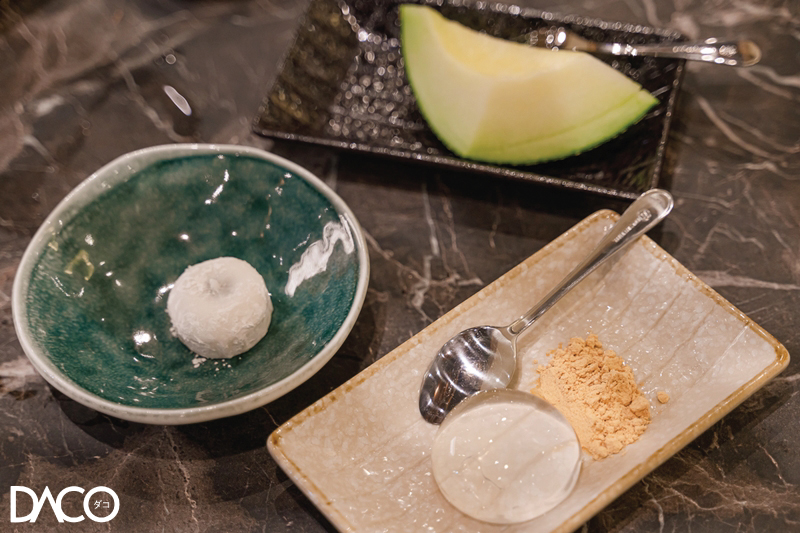 หลังจากอิ่มหนำกับสารพัดของคาวแล้ว เราตบท้ายกันด้วยของหวานกันหน่อยดีกว่า ทั้งเมล่อนชิ้นโต โมจินูเทลล่า และโมจิหยดน้ำที่เสิร์ฟมาพร้อมกับผงคินาโกะและน้ำเชื่อมคุโระมิตซึ